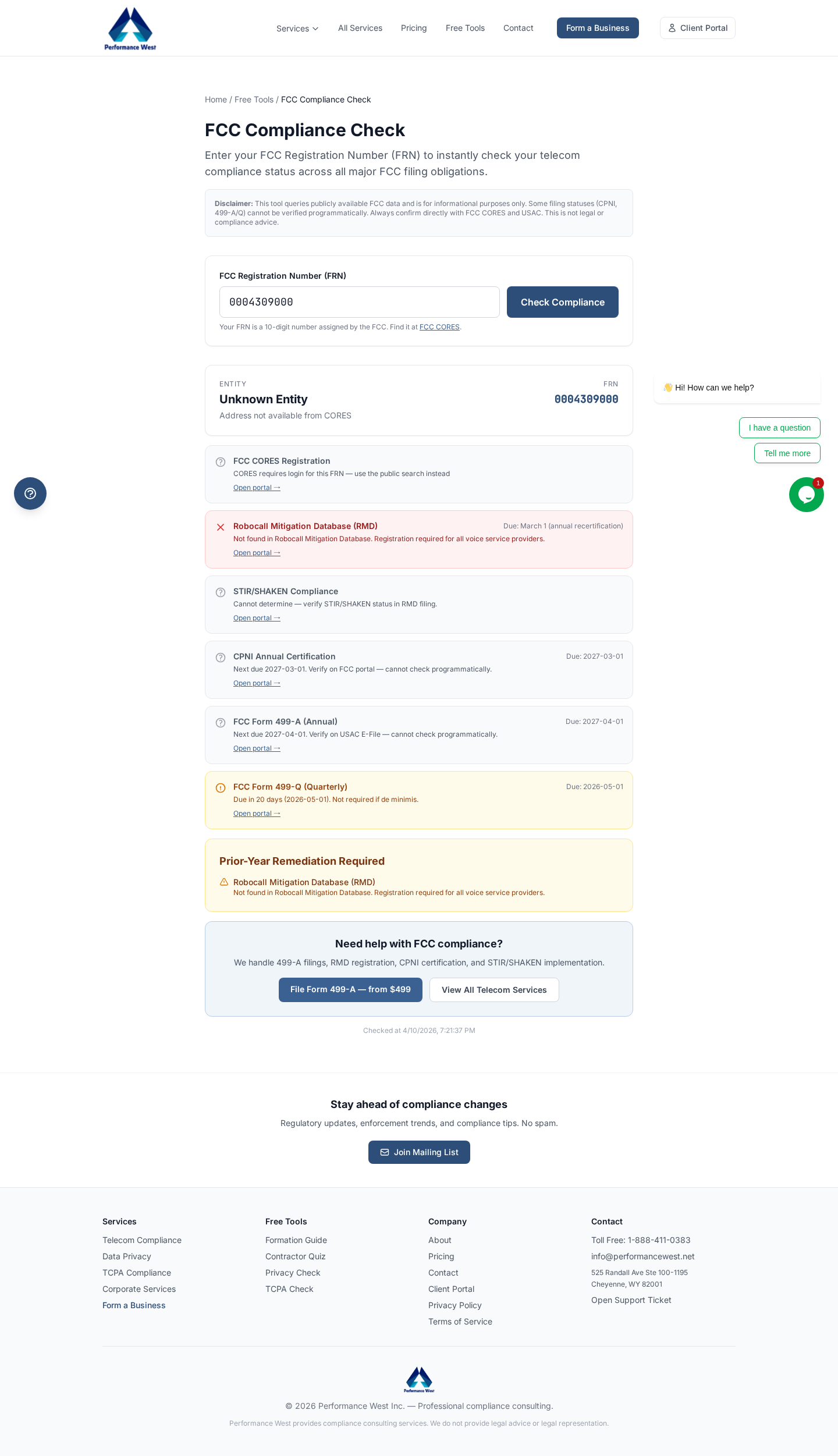 justin f8cd37ac8c Initial commit — Performance West telecom compliance platform