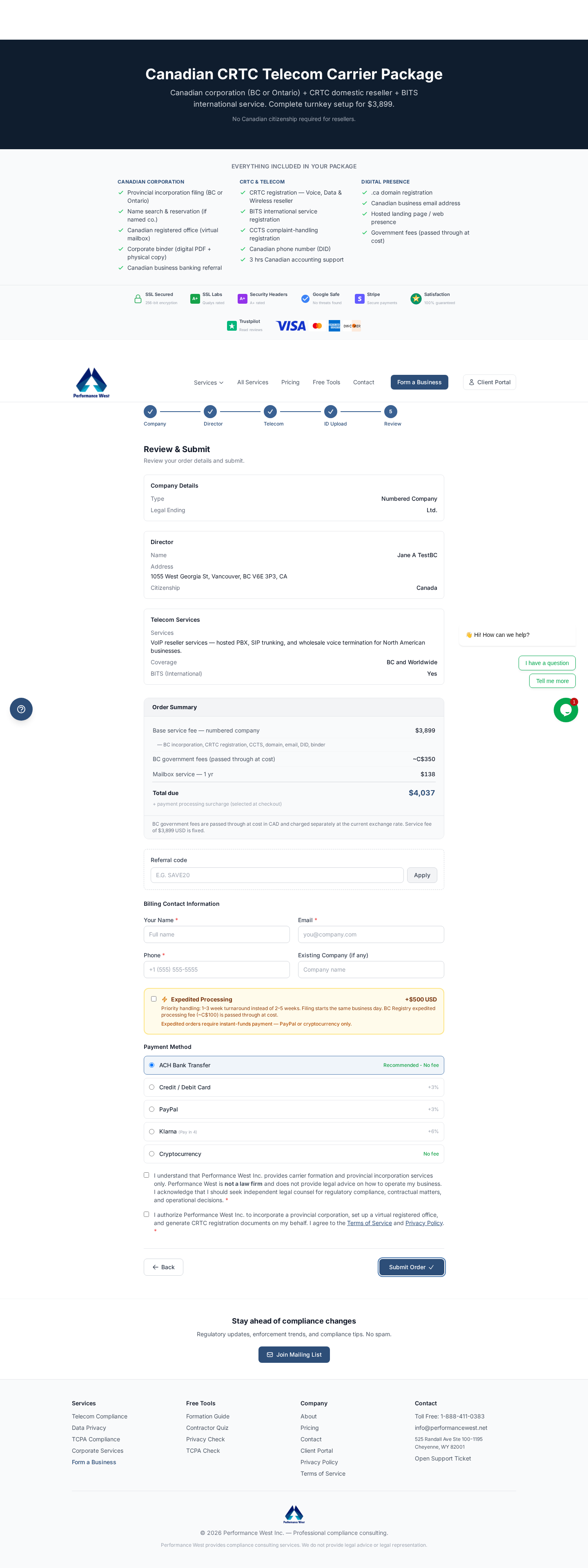 document generators, FCC compliance tools, Canada CRTC formation,