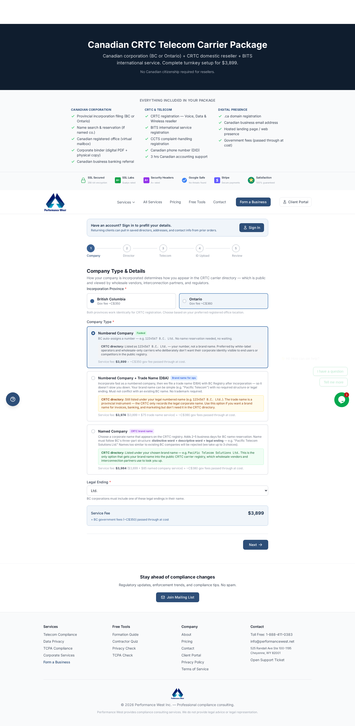 Includes: API (Express/TypeScript), Astro site, Python workers, document generators, FCC compliance tools, Canada CRTC formation, Ansible infrastructure, and deployment scripts. Co-Authored-By: Claude Opus 4.6 (1M context) <noreply@anthropic.com>
