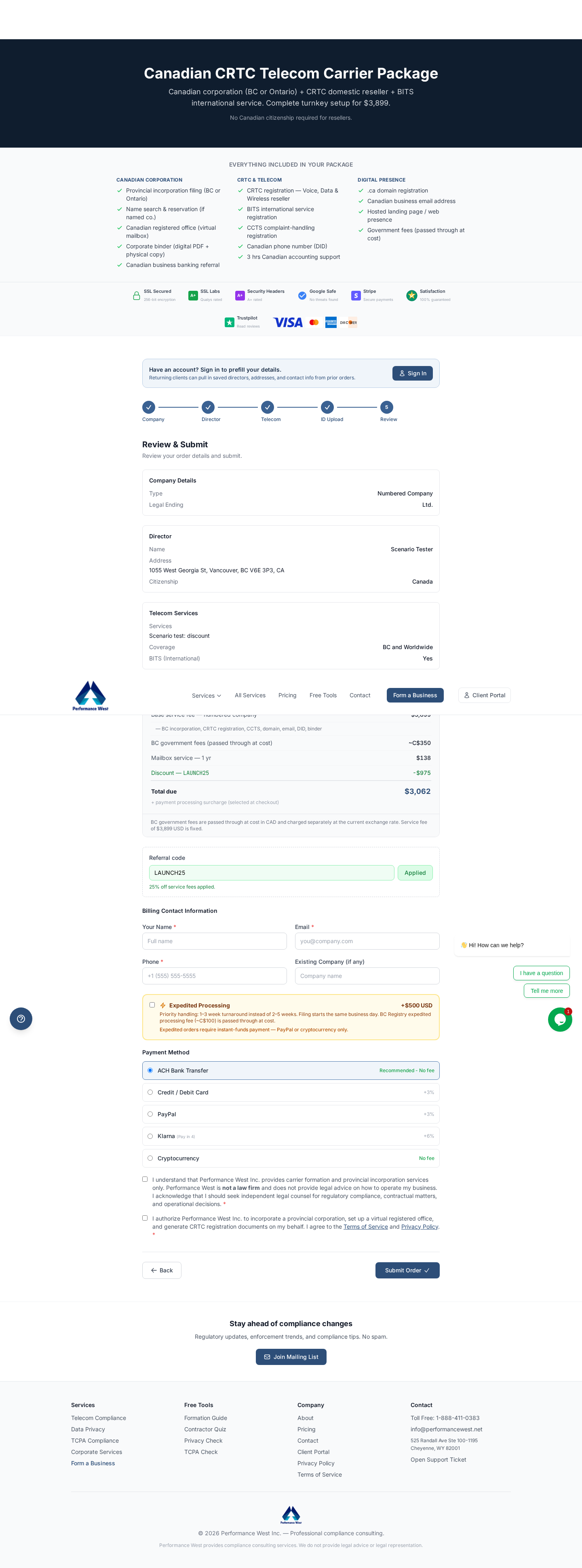 Includes: API (Express/TypeScript), Astro site, Python workers, document generators, FCC compliance tools, Canada CRTC formation, Ansible infrastructure, and deployment scripts. Co-Authored-By: Claude Opus 4.6 (1M context) <noreply@anthropic.com>