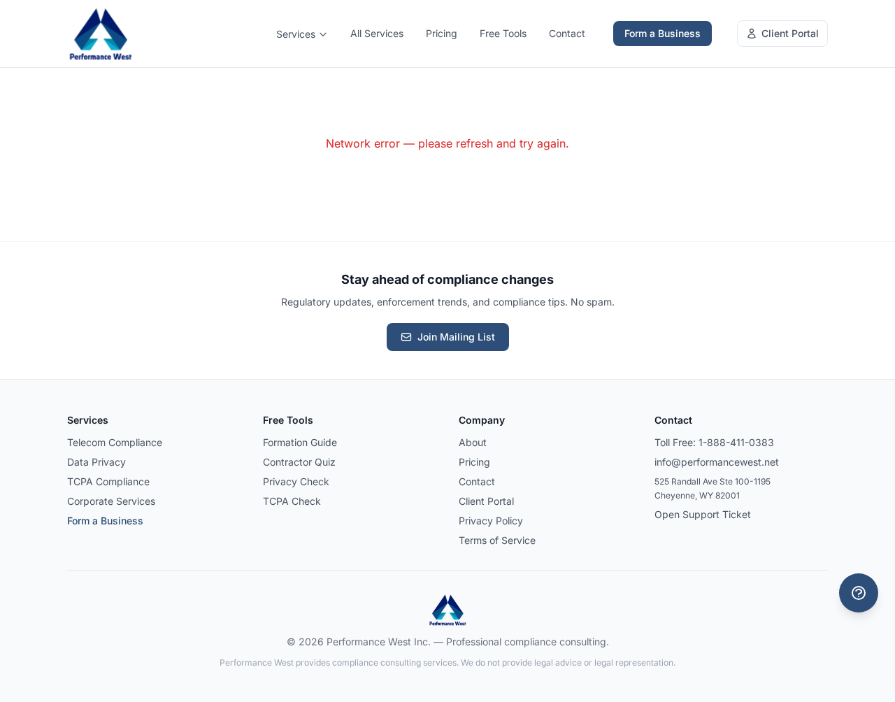 justin f8cd37ac8c Initial commit — Performance West telecom compliance platform